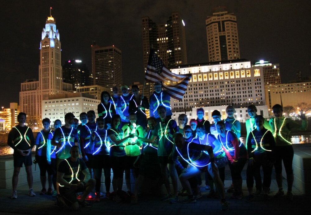 When the Baton reached our very own Columbus, Ohio on Sunday April 6th, we decided to go all out and outfit the whole group of more than 30 runners. Our hat goes off to Stuart Kirk for organizing and leading us all on an outstanding group run through downtown Columbus at 10:00 PM.